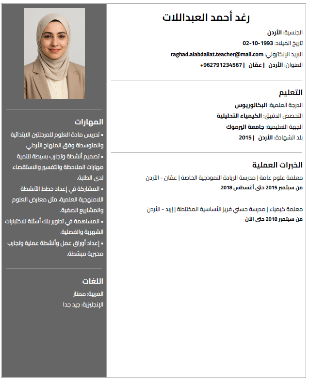 - تنسيق عربي RTL احترافي ومتوافق مع جهات التوظيف.